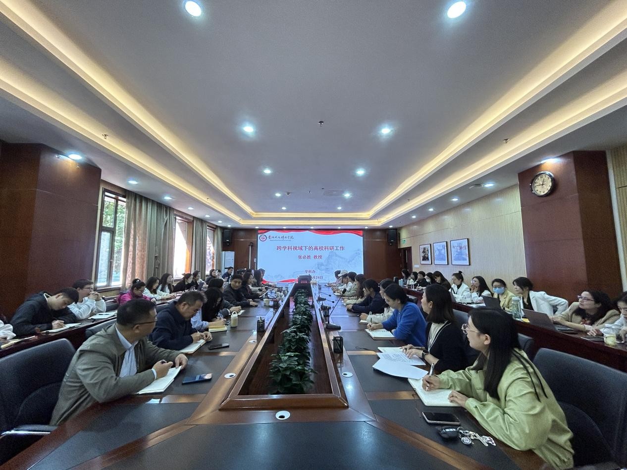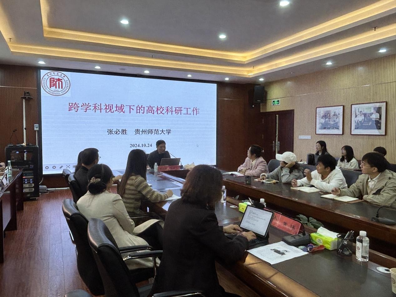 2024年10月24日上午10:00,贵州师范大学教授、博士生导师张必胜教授应邀在行政楼201会议室作了题为“跨学科视域下的高校科研研究”的学术讲座讲座由黄玮副校长主持,温小军副校长出席,各学院科研骨干等100余人参加了此次讲座