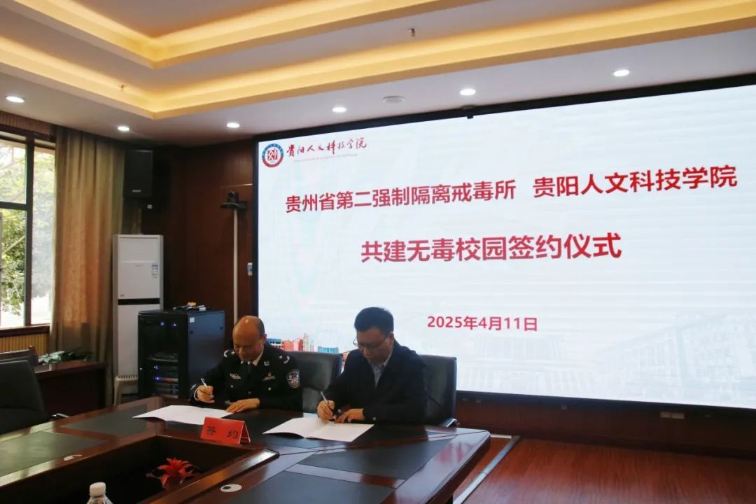 禁毒宣传教育活动开始前,贵州省第二强制隔离戒毒所同开云官网签订了“合作共建无毒校园”合作协议。开云官网党委常务副书记陆官虎、贵州省第二强制隔离戒毒所党委书记、所长周志平分别介绍了双方基本情况,就合作事宜达成意向。