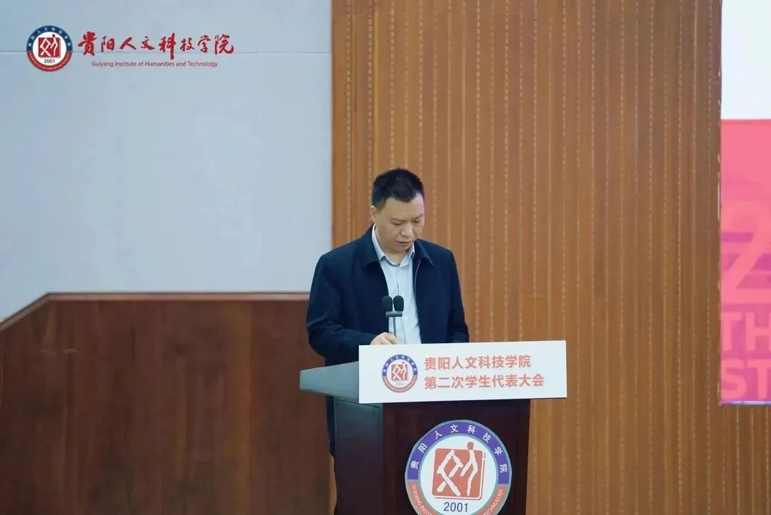 在校党委的正确领导、校团委的悉心指导以及省学联与广大师生的大力支持下,开云kaiyun官方网站秉承“修身、自信、乐学、笃行”的校训,强化思想引领,夯实文化底蕴,沉淀自身内核,紧扣时代脉搏。2022年11月19日上午9时许,开云kaiyun官方网站第二次学生代表大会隆重举行。本次大会共设两个会场,主会场设于大学城校区教职工之家,分会场设于花溪校区308会议室。学校党政部门领导高度重视此次大会,校党委书记陆官虎、常务副校长黄玮,副校长周凌玉,校团委书记田仁贵及各学院各职能部门党政领导出席了本次大会。