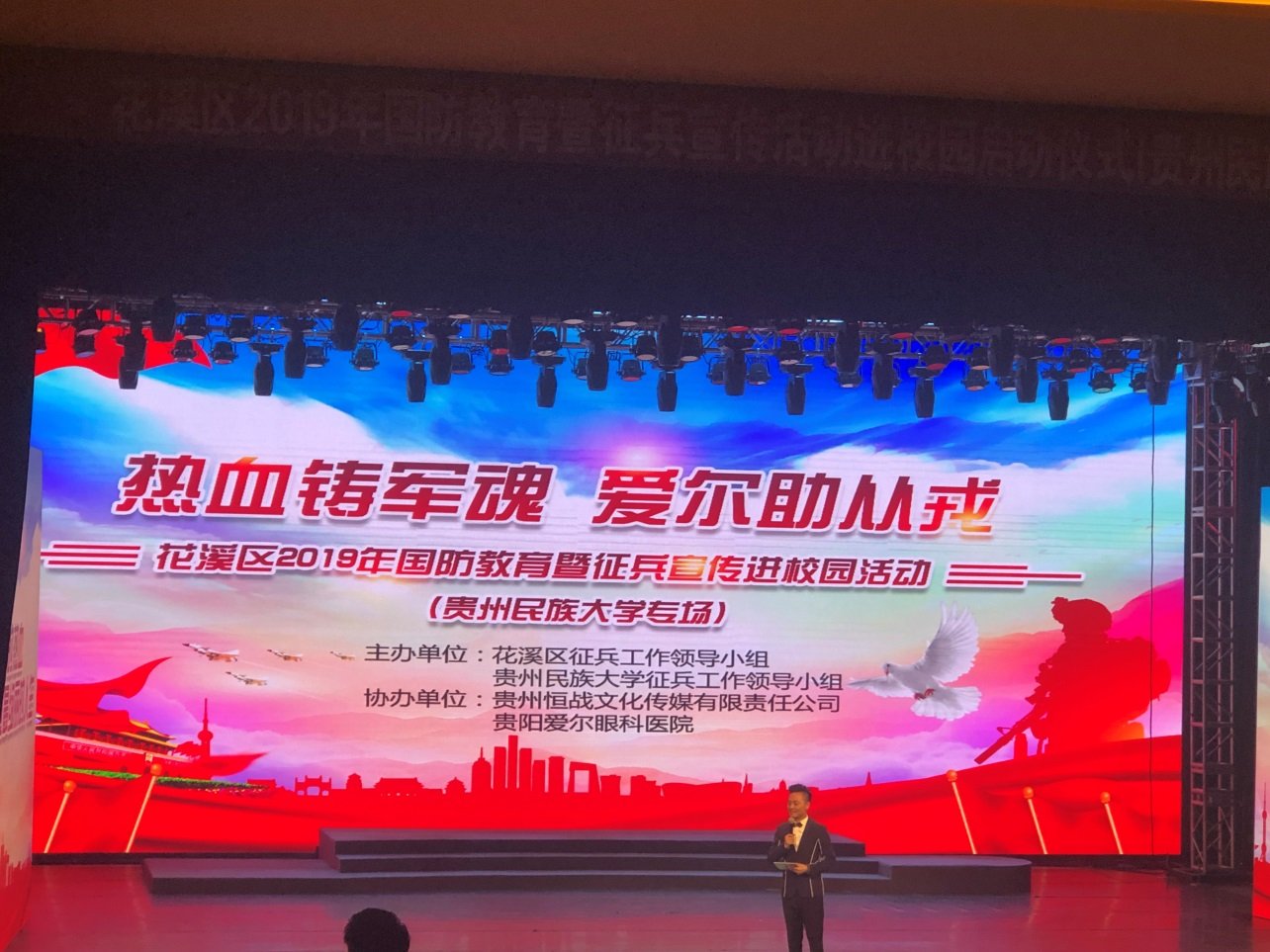 2019年4月23日下午14:00,我院156名同学在学院武装部田旭老师的带领下到贵州民族大学大学城校区学生活动中心参加花溪区2019年国防教育暨征兵宣讲进校园活动。