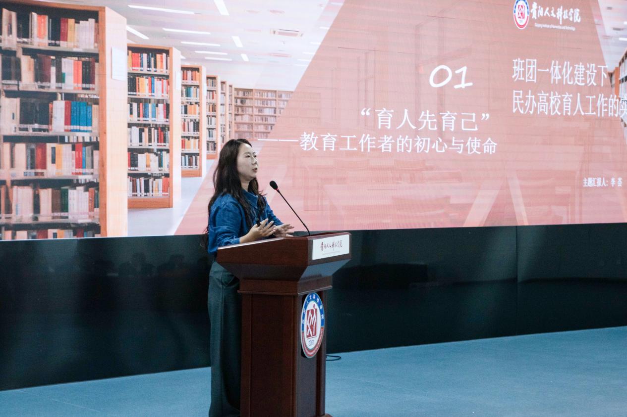 在经验分享环节,特别邀请了校团委书记李荟老师。李荟老师围绕“班团一体化建设下的育人实践”作主题分享。她生动讲述了从自我成长、工作定位、到育人方法和学生培养的完整实践经验,强调班团建设中“育人先育己”的教育理念,提出辅导员需不断提升自我修养,才能更好引领学生成长;同时倡导赋予学生试错空间,推动学生自主成长。这些贴合实际、具体可行的实践经验,为推进班团一体化建设、精准助力学生成长提供了宝贵参考。