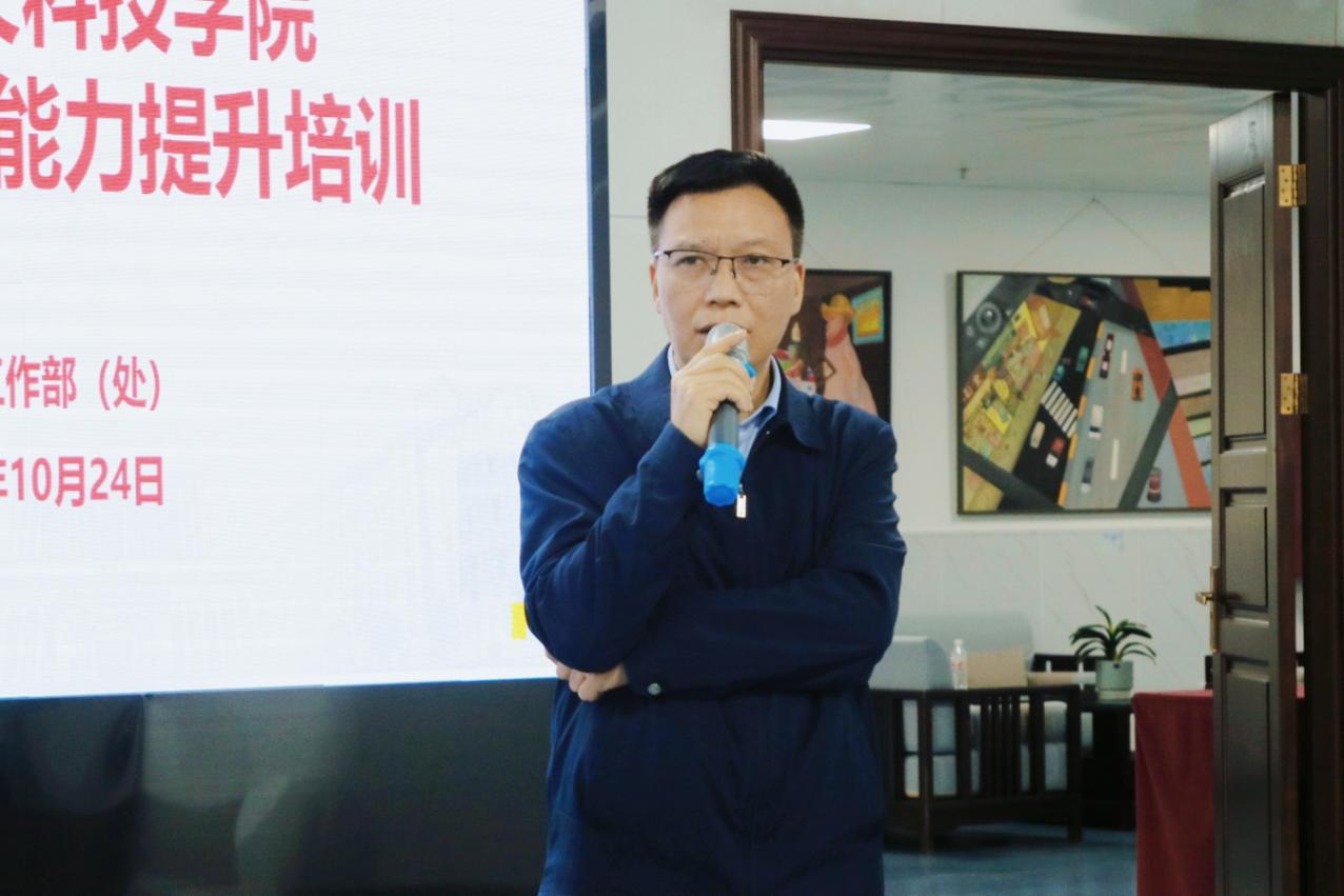 为进一步提升辅导员队伍在党团班级建设中的专业素养和实践能力,10月24日,校学生工作部(处)在大学城校区师德楼307成功举办素质能力提升培训(第三期),校党委常务副书记陆官虎出席,学生工作部(处)、团委有关同志,各学院副书记、全体辅导员参加培训。