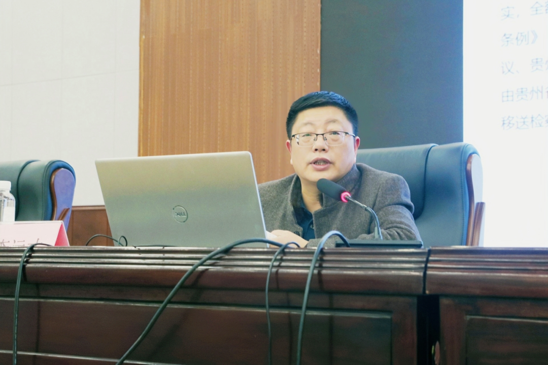 11月7日,贵州师范大学纪委、监察专员办案件审理室主任、廉洁文化研究院(纪检监察研究院)院长李运才教授受邀到开云官网为全校师生党员开展“深学笃行习近平总书记关于加强党的作风建设的重要论述,持续擦亮中央八项规定‘金色名片’,以作风建设新成效推动事业高质量发展”专题讲座。