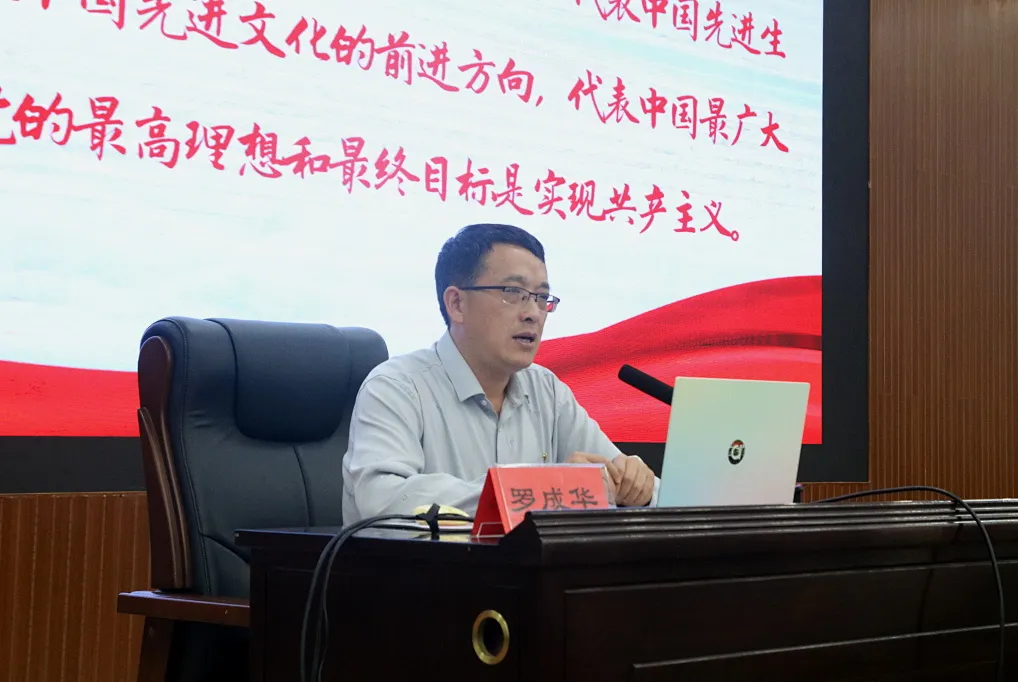 10月18日下午,开云官网马克思主义学院副院长罗成华为学员们讲授“思想引领,聚力建功——学习践行中国共产党的指导思想”专题党课。