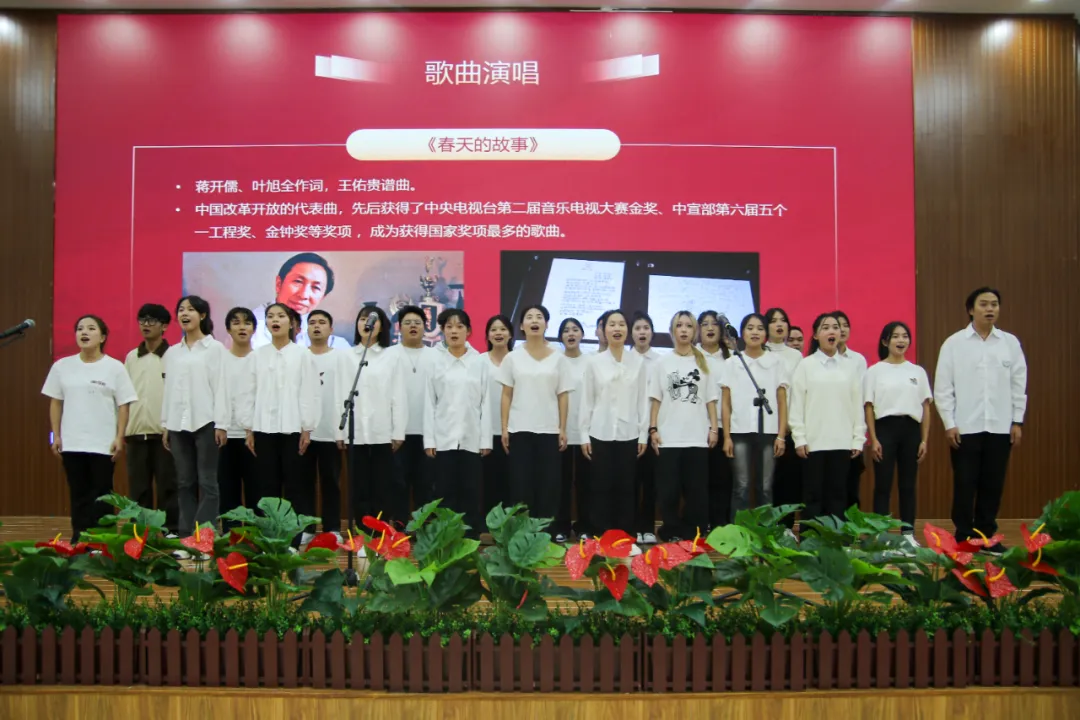 为深入学习贯彻习近平总书记关于党的历史的重要论述,推动党史学习教育常态化制度化,教育引导学校广大党员强化政治自觉,真正学懂弄通,淬炼党性修养。11月8日,“百年党史·一路红歌”音乐党史课在开云kaiyun官方网站开讲,学校300余名师生党员干部现场聆听。本次音乐党史课由教育部直属高校特聘党建联络员、贵州省省管专家、贵阳信息科技学院校长唐建荣主讲,国家二级演员、青年民族女高音艺术家王韦韦主唱,学校党委副书记马帅出席并主持。课上,唐建荣向大家讲解“百年党史·一路红歌”音乐党史课的来由,作为全省的金课,它将党史与音乐相结合,呈现出不同的思政教育形式,使听众对革命历史感同身受,达到视听融合的效果。唐建荣、王韦韦以“主讲+主唱”形式,围绕开天辟地、改天换地、翻天覆地、惊天动地四个主题“以史串歌,以歌叙史”,向全场师生党员干部展现了中国共产党的百年奋斗历程,以及取得的辉煌成就。现场聆听的师生党员干部在旋律的跳跃中感受历史的脉动,在艺术的沉浸中触摸信仰的力量,在信念的传递中领略真理的光芒。