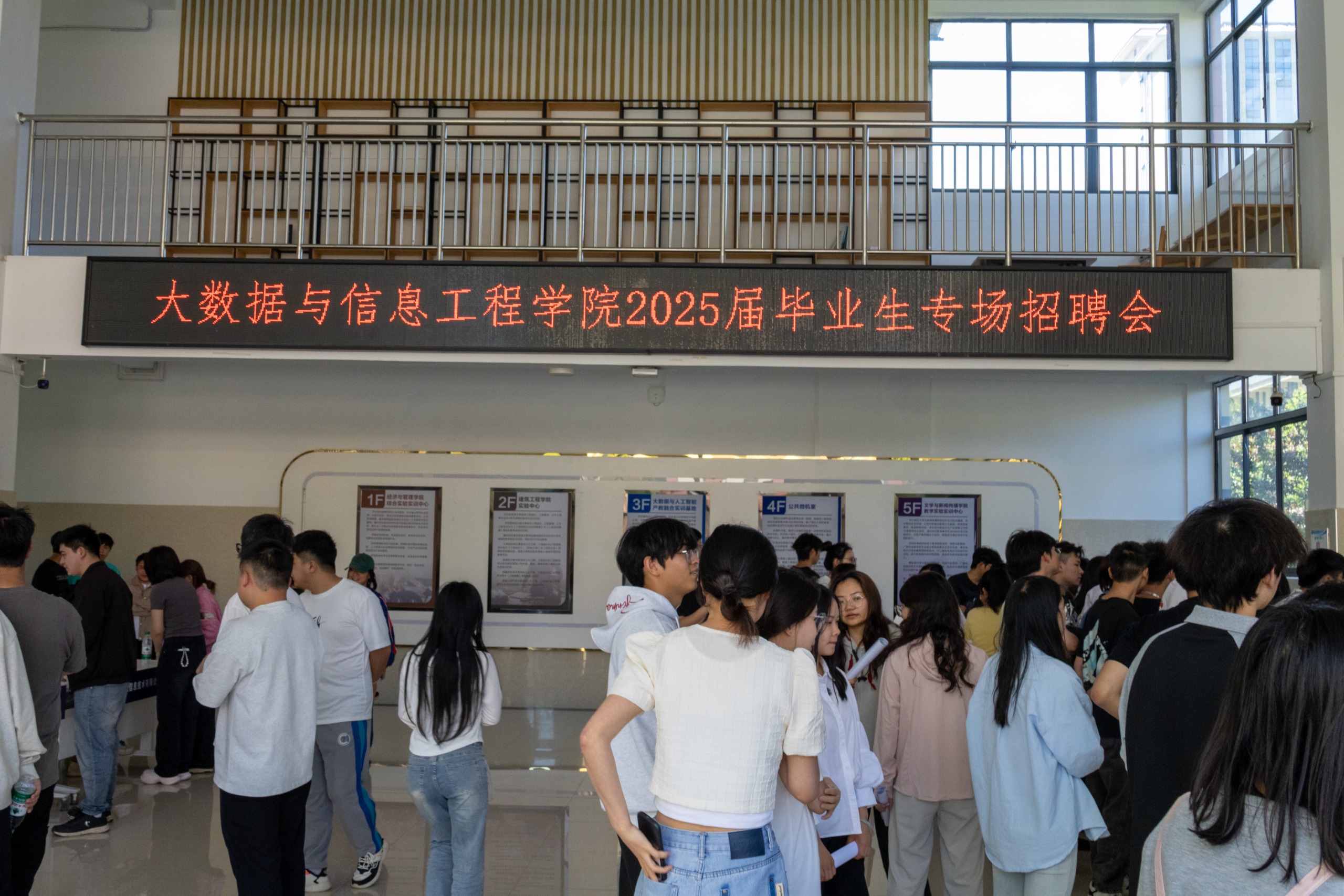 5月12日,大数据与信息工程学院在大学城校区举办2025届毕业生专题招聘会,并同步开展专题宣讲会与校企座谈会。学院领导班子与企业代表齐聚一堂,共话人才培养与就业发展,为毕业生搭建就业桥梁,推动产教融合迈向新高度。