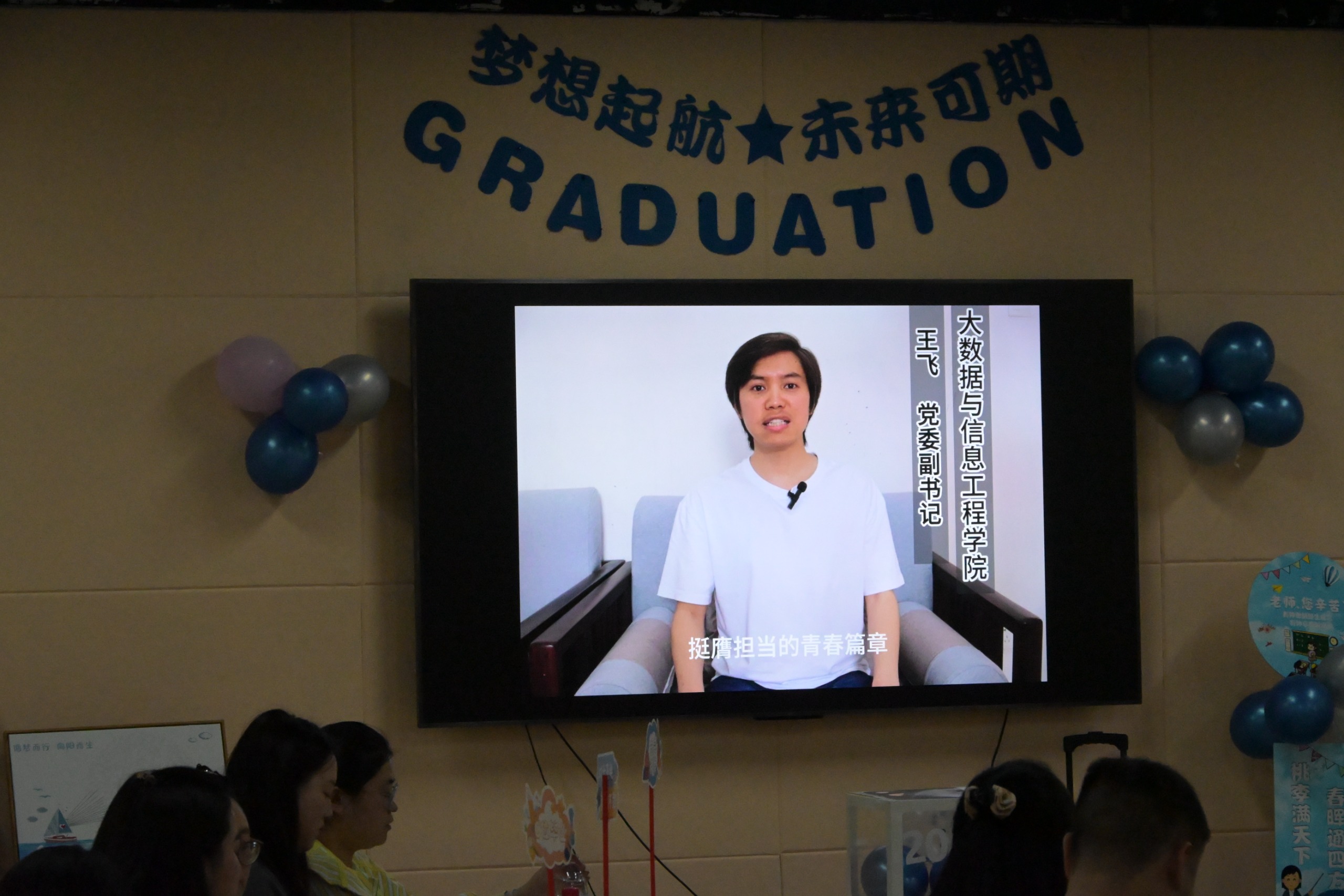 会上,播放了学院党建宣传工作室精心制作的祝福视频,回顾了毕业生党员们大学四年的成长足迹。展现了他们的青春岁月、奋斗历程以及取得的成绩。回顾了他们四年学习生活中努力的美好瞬间,共同展望他们未来的锦绣前程。