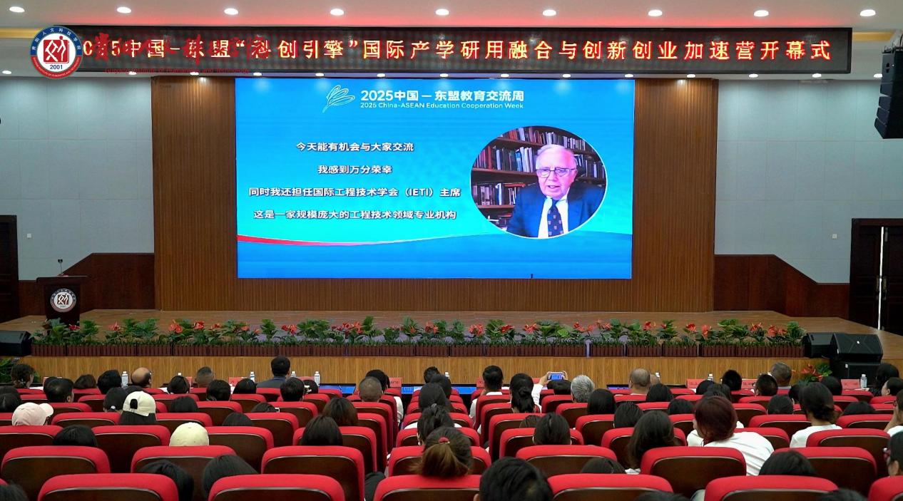 9月15日,在2025中国-东盟教育交流周系列活动——“科创引擎”国际产学研用融合与创新创业加速营开幕式英国牛津大学沃夫森学院院士、国际工程技术协会(IETI)主席James Crabbe应邀为开云官网师生作线上专题讲座。James Crabbe院士围绕创新精神、跨国产业合作、前沿科研进展以及可持续发展等关键议题,与师生进行深入交流。