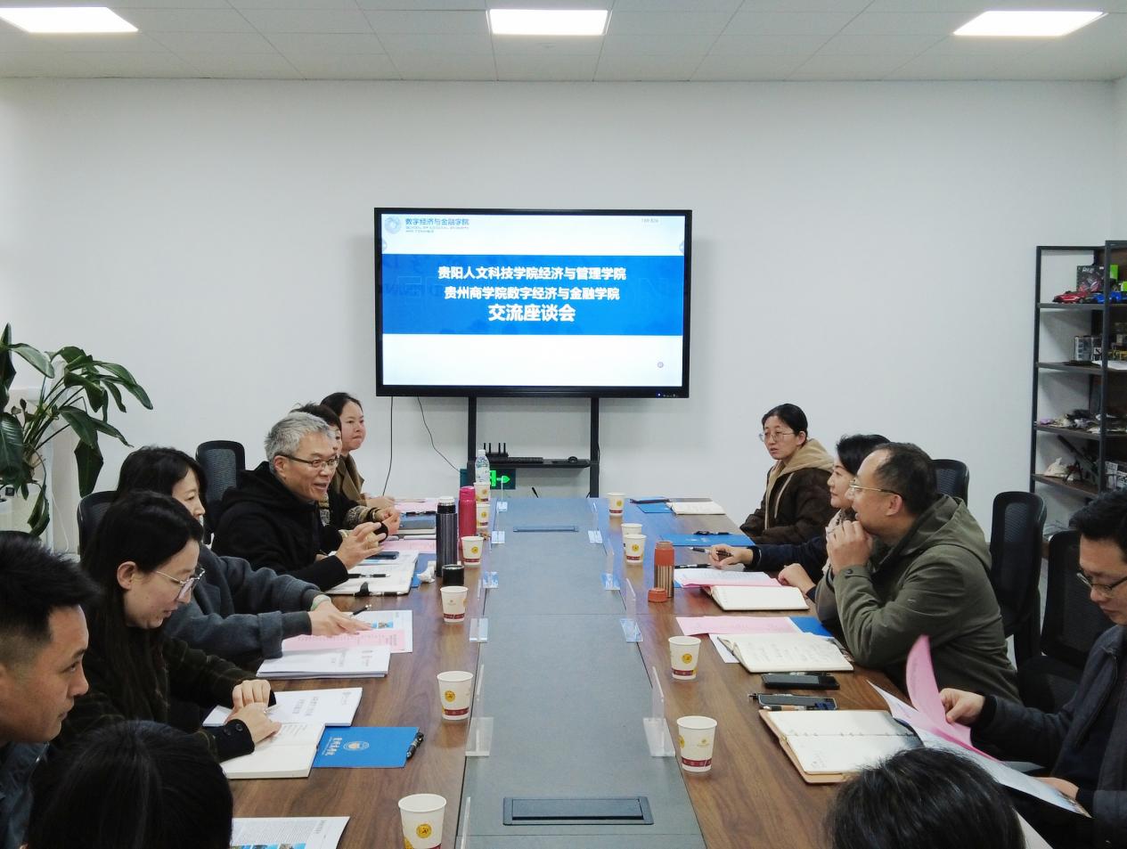 此次出行受到贵州商学院数字经济与金融学院的热情接待。学院党委书记阮潇潇、院长董耀武、副院长段登辉及相关工作负责人出席座谈会,双方围绕本科教学工作合格评估的核心要点、实践路径与经验方法等内容展开深入探讨。