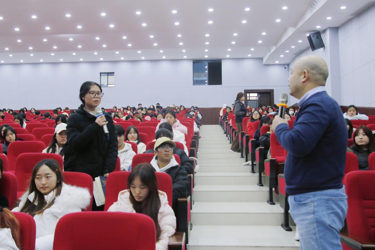 在互动交流环节,与会学生围绕非遗文创项目定位、机器人技术应用场景创新以及首次参赛准备工作等问题踊跃提问。两位专家指出,项目内容应与团队专业背景或个人经历紧密结合,创新可体现于场景聚焦与技术集成等方面。他们鼓励同学们深入开展调研、扎实积累经验,通过真实用户反馈与项目持续迭代来提升整体说服力。