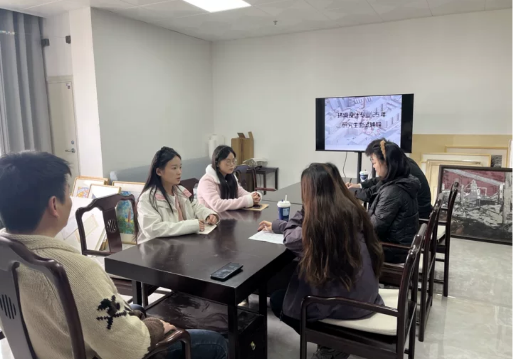 为提升辅导实效,会议安排了具有高还原度的全真模拟面试环节,各位老师在聆听学生陈述并展示自身条件之后,当场逐一为考生提供针对性的分析与建议。针对自我介绍中的模板化问题,强调要挖掘个人特色与真实经历,展现独特的专业视角。同时,针对英语口语面试难点,建议考生通过日常积累和专业词汇储备,提升表达的流利度与准确性,打破语言壁垒;对于跨专业备考的学生,专门分析了如何将原专业背景与环境设计专业相结合,实现“扬长避短”。
