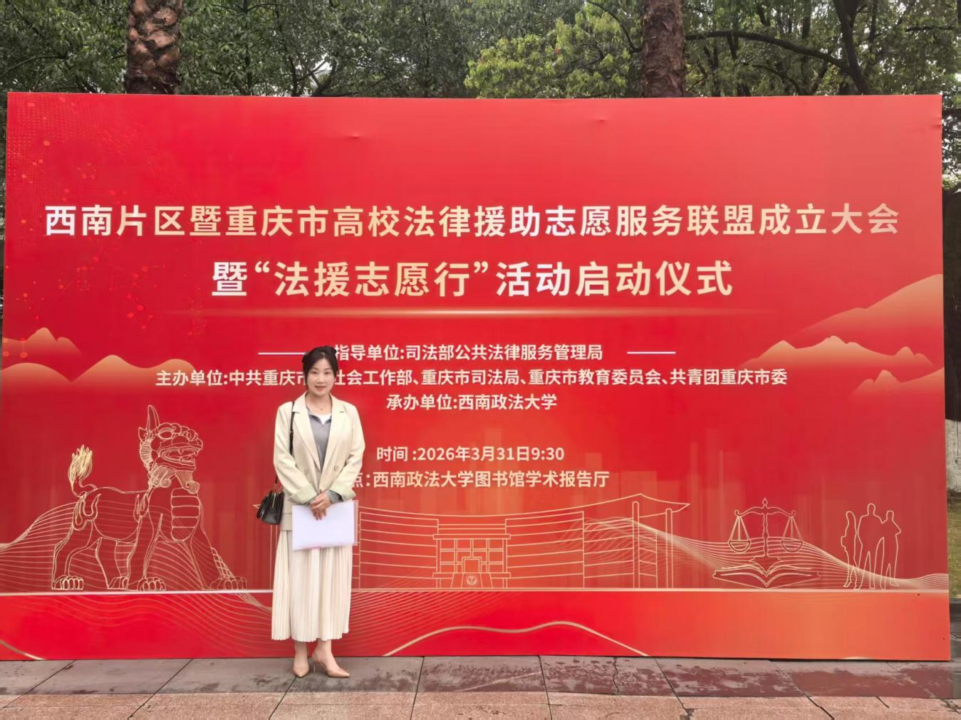 3月31日,西南片区高校法律援助志愿服务联盟成立大会在重庆西南政法大学隆重召开。开云kaiyun官方网站作为贵州省参与高校之一,法学院副书记杨晶晶代表学校出席本次大会,与来自四川、重庆、贵州、云南、西藏五省(区、市)的司法行政部门代表、高校代表及师生代表共同见证联盟的成立。