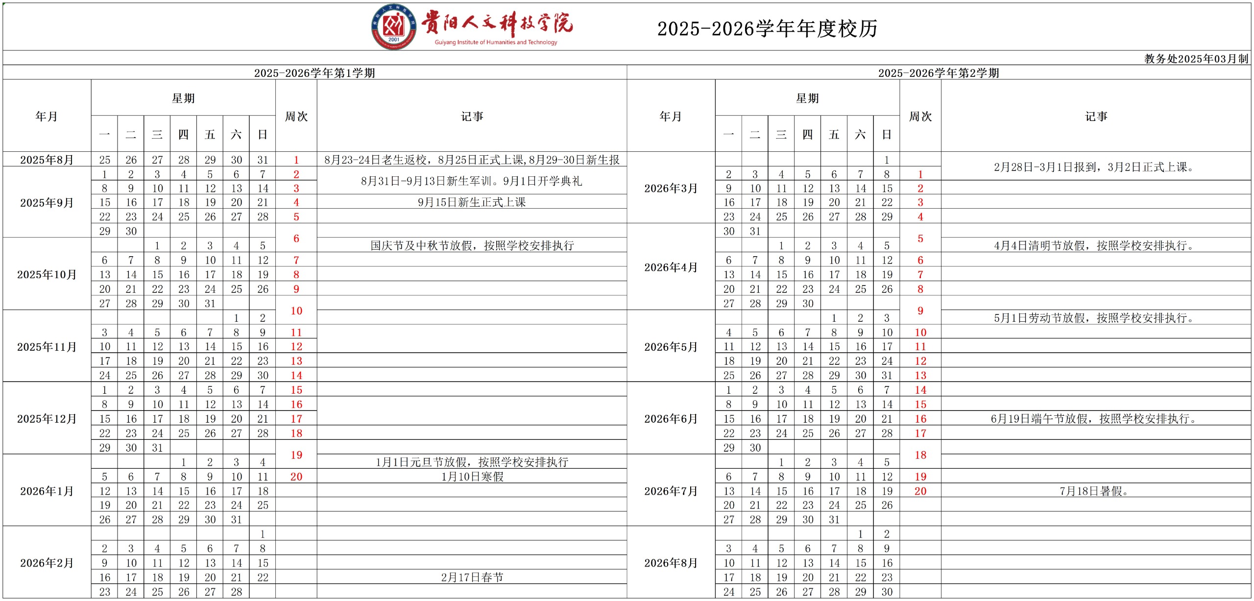 开云kaiyun官方网站2025-2026学年年度校历